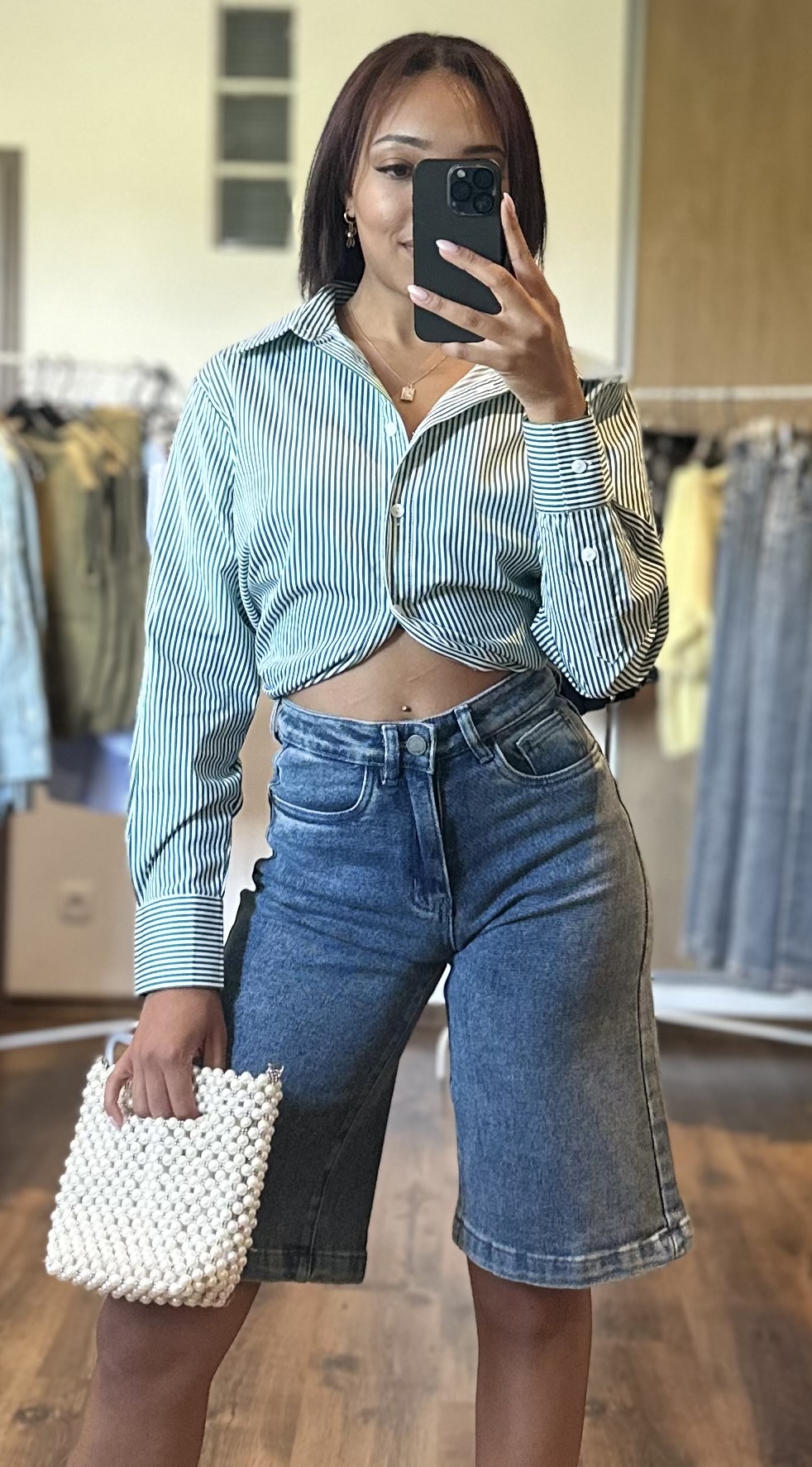 Short en denim à la coupe droite et longueur genou pour une silhouette moderne et tendance. Taille haute flatteuse, matière confortable et facile à associer.